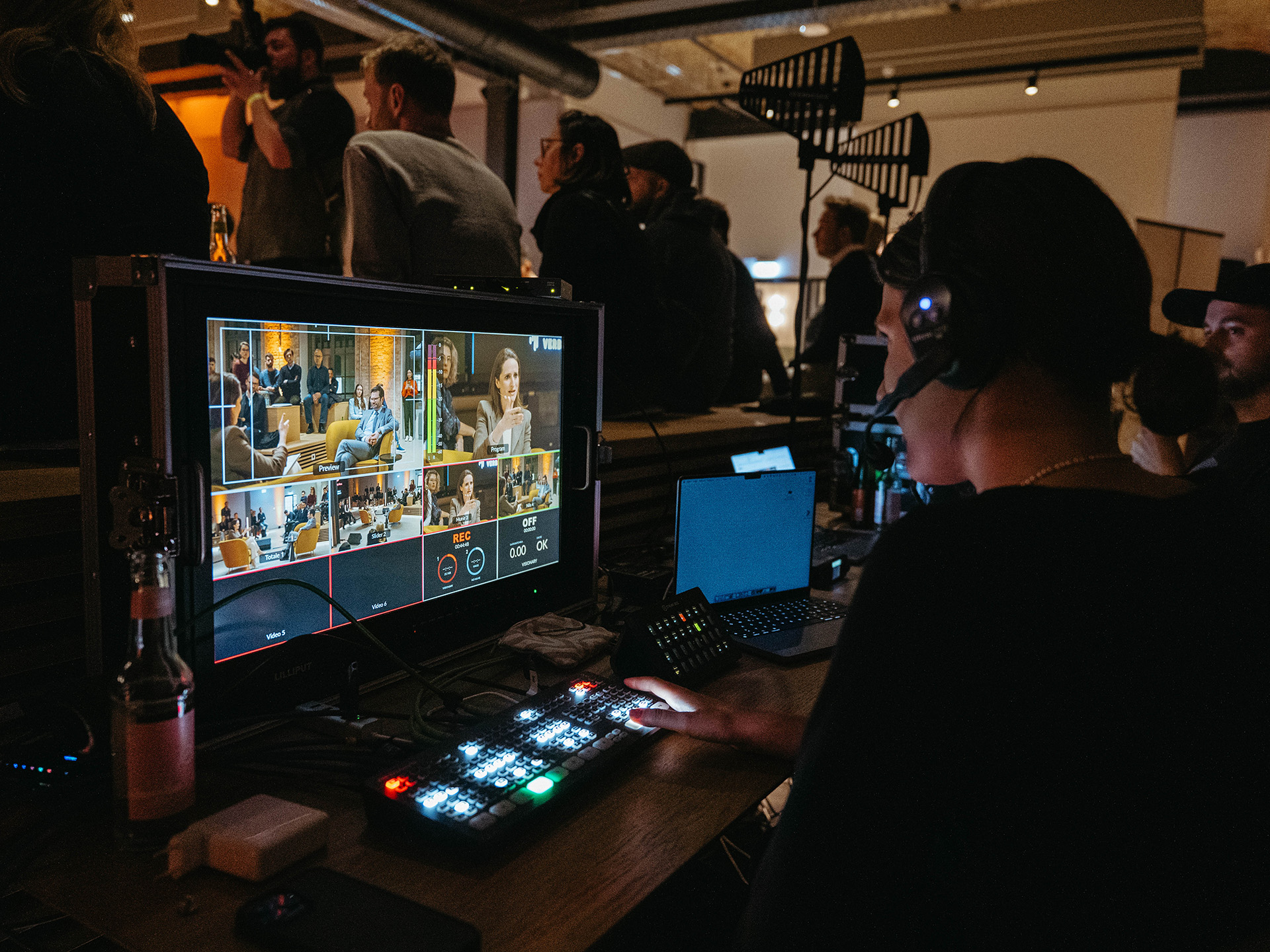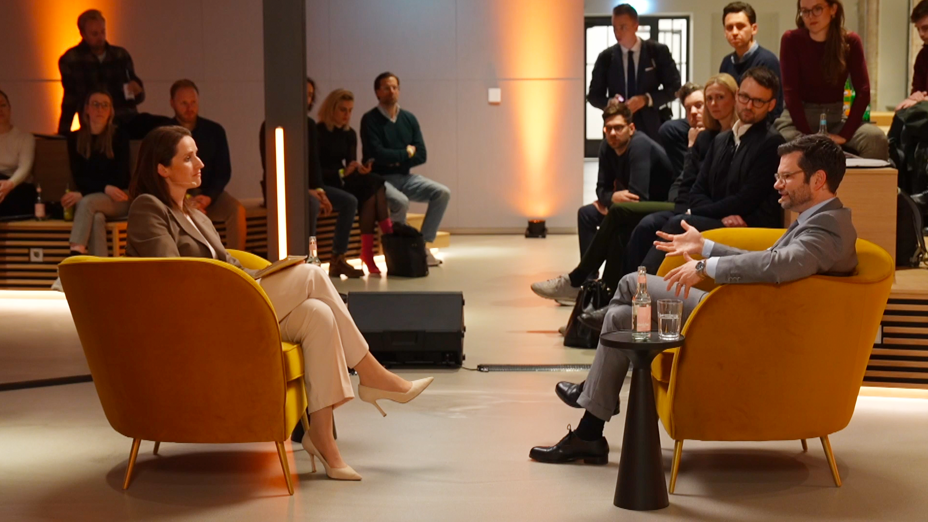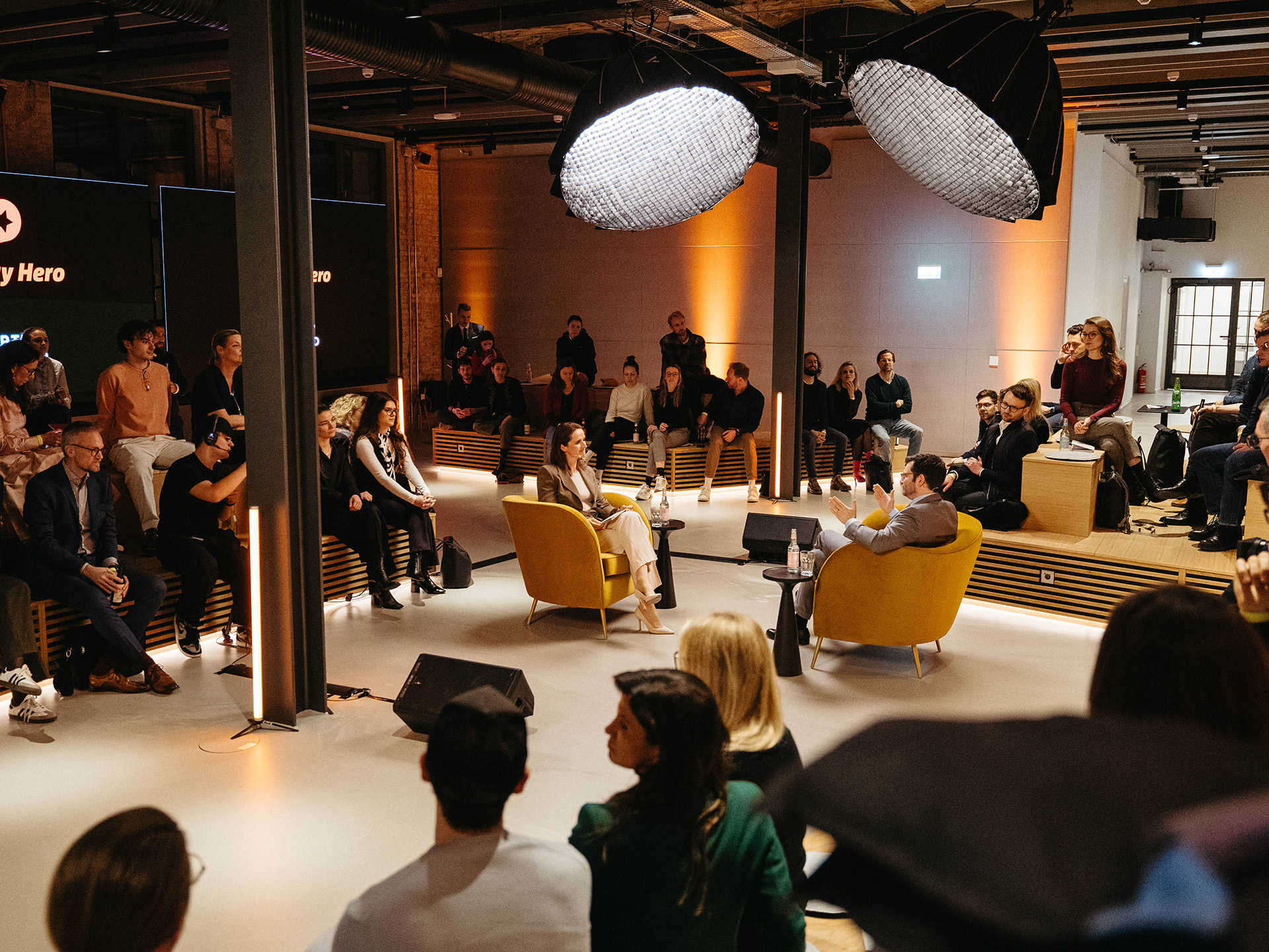 For this, we placed the stage in the middle of the audience and lit it with soft diffusers. This creates a high-quality, yet conversational look.
